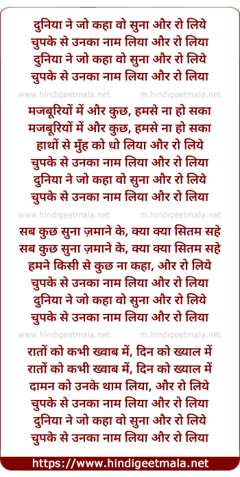 Lyrics of Duniya Ne Jo Kaha Wo Suna - दुनिया ने जो कहा वो सुना
