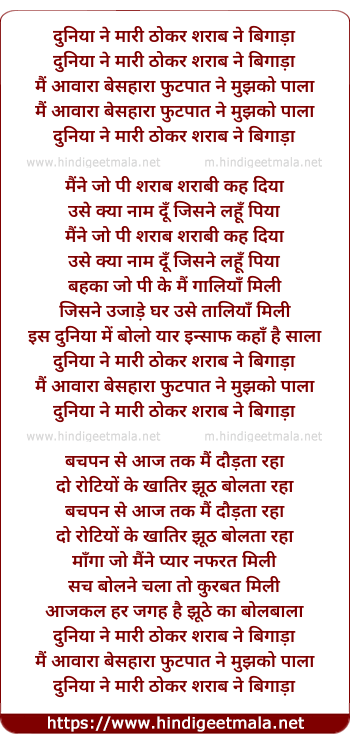 Lyrics of Duniya Ne Maari Thokar - दुनिया ने मारी ठोकर