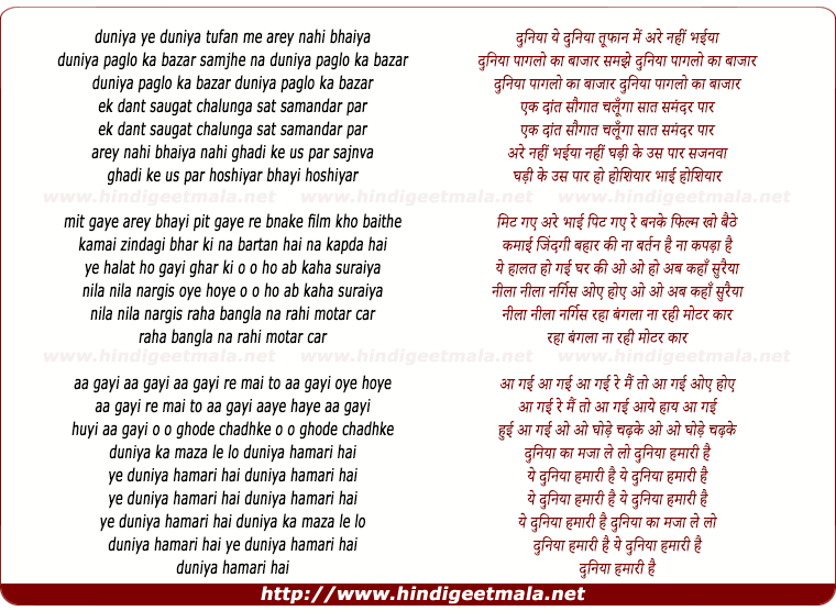 Comments for lyrics of song "Duniya Paglo Ka Bazaar"