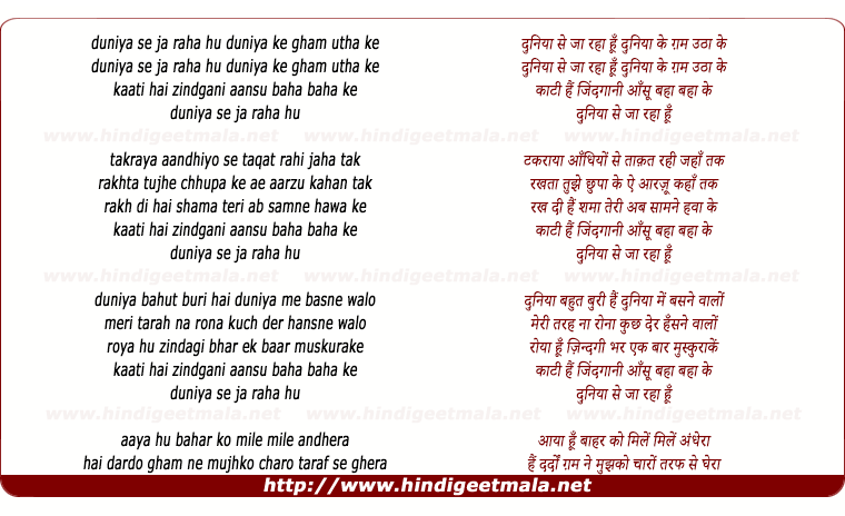 Lyrics of Duniya Se Ja Raha Hoon - दुनिया से जा रहा हूँ