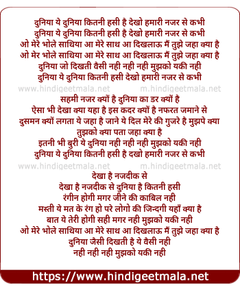 Lyrics of Duniya Ye Duniya - दुनिया ये दुनिया