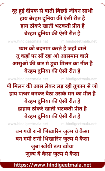 Lyrics of Dur Hui Deepak Se Bati - दूर हुई दीपक से बाती