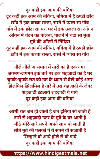 Lyrics of Dur Kahin Ik Aam Ki Bagiyaa - दूर कहीं इक आम की बगिया