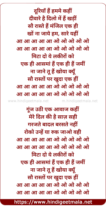 Poetic Translation - Lyrics of Duriya Hai Ham Me Kahi (Raaste) - दूरियाँ हैं हममे कहीं