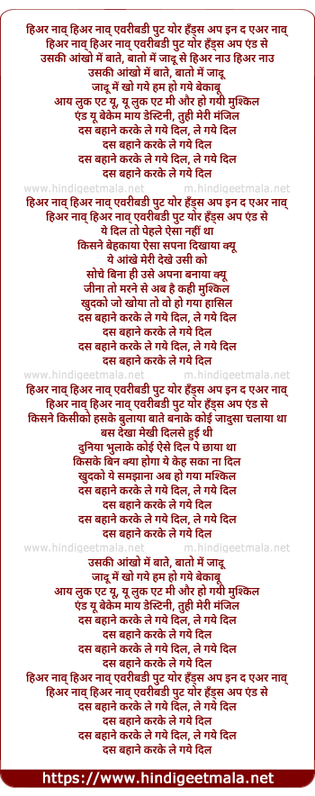 Lyrics of Dus Bahane (Extended) - हिअर नाव् हिअर नाव् एवरीबडी पुट योर हँड्स अप इन द एअर नाव्