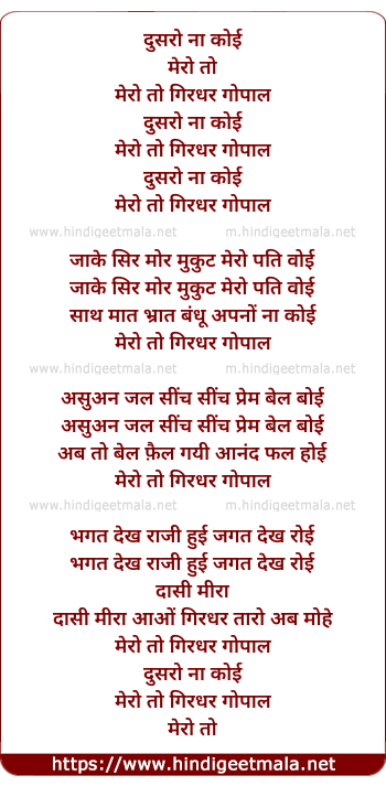 Lyrics of Dusaro Na Koi - दुसरो ना कोई