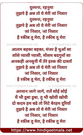Dushamana, Rehnuma, Tujhpe Hai Abb - दुश्मना, रहनुमा, तुझपे है अब