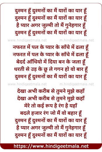 Lyrics of Dushman Hu Dushmano Ka - दुश्मन हूँ दुश्मनों का