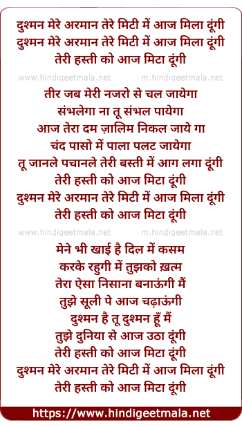 dushman mere armaan tere miti me aaj mita dungi