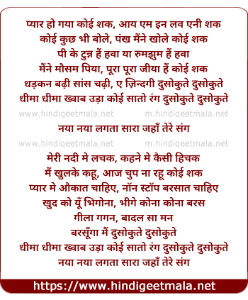 Lyrics of Dusokute Pyar Ho Gaya Koi Shaq - दुसोकुते प्यार हो गया कोई शक