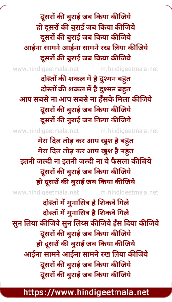 Lyrics of Dusro Ki Burai Jab Kiya Kijiye - दूसरों की बुराई जब किया कीजिये