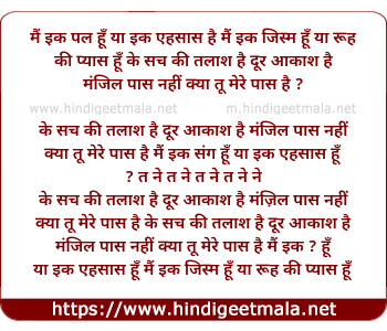 main ik pal hoon yaa ik ehsaas hoon main ik jism