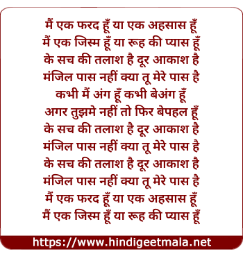 Lyrics of Ehsaas Hu - मैं एक फरद हूँ या एक अहसास हूँ
