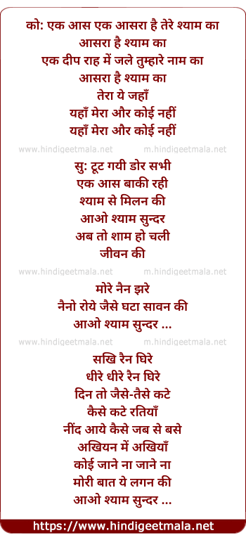 ko: ek aas ek aasaraa hai tere shyaam kaa