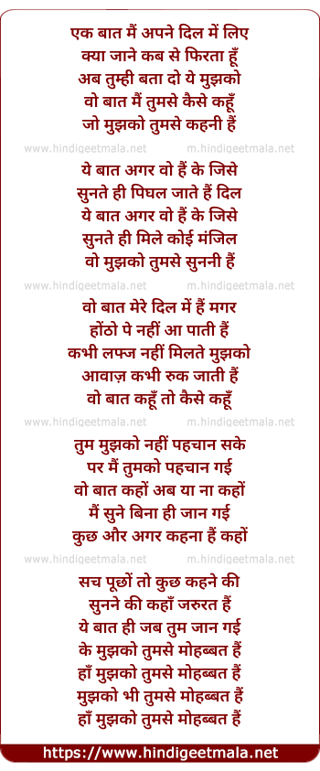 Lyrics of Ek Baat Main Apne Dil - एक बात मैं अपने दिल