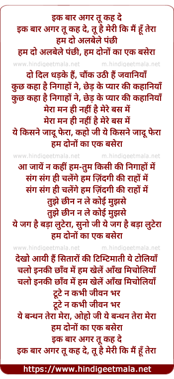 Lyrics of Ek Baar Agar Tu Kah De - इक बार अगर तू कह दे