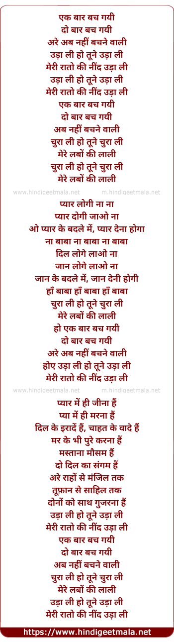 Lyrics of Ek Bar Bach Gayi - एक बार बच गयी