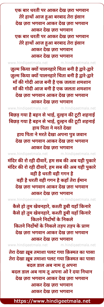 Lyrics of Ek Baar Dharti Par Aakar Dekh Zara Bhagwan - एक बार धरती पर आकर देख ज़रा भगवान