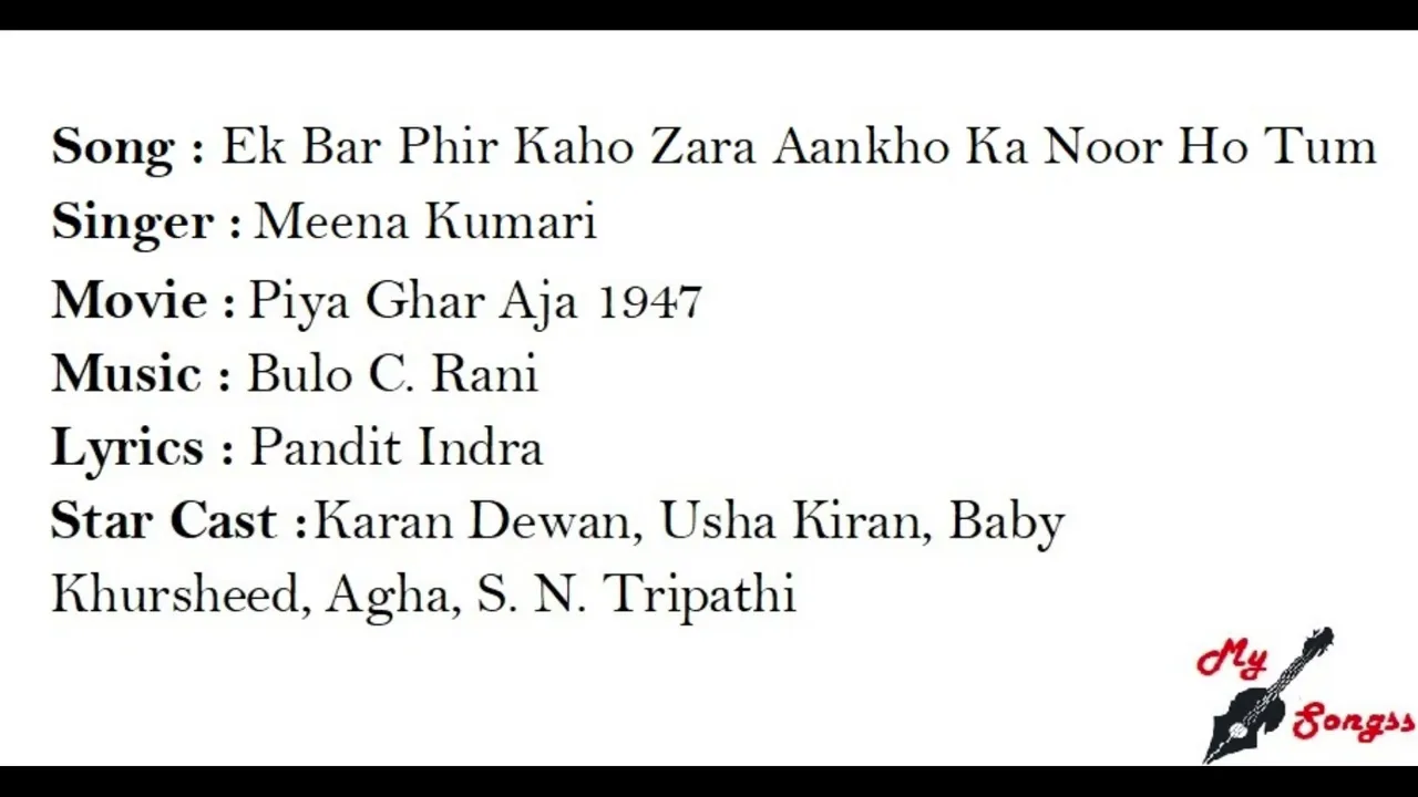 Ek Bar Phir Kaho Zara Aankho Ka Noor Ho - एक बार फिर कहो ज़रा एक बार फिर कहो ज़रा