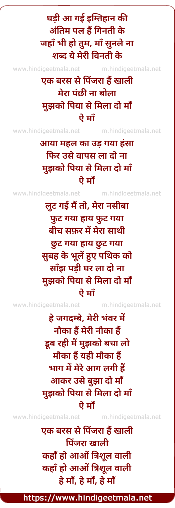Lyrics of Ek Baras Se Pinjra Hai Khaali - एक बरस से पिंजरा है खाली