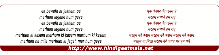 Lyrics of Ek Bewaafa - एक बेवफा की जख्म पेek bewafa ki jakham pe