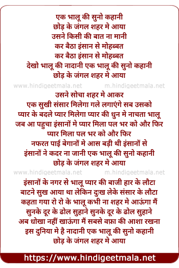 Lyrics of Ek Bhalu Ki Suno Kahani - एक भालू की सुनो कहानी