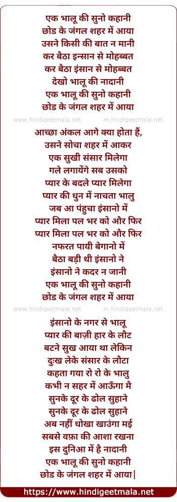 Lyrics of Ek Bhalu Ki Suno Kahani (Male)