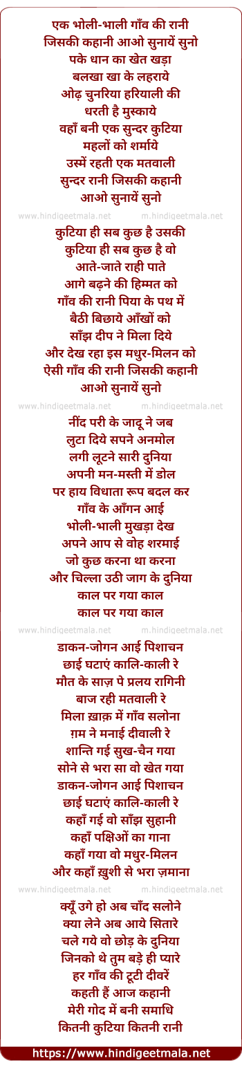 Lyrics of Ek Bholi Bhaali Gaanv Ki Raani - एक भोली-भाली गाँव की रानी