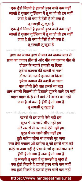 Lyrics of Ek Dhundho Milte Hai Hazaro - एक ढूंढ़ो मिलते है हज़ारो