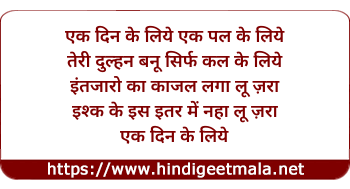 Lyrics of Ek Din Ke Liye, Ek Pal Ke Liye - एक दिन के लिये, एक पल के लिये