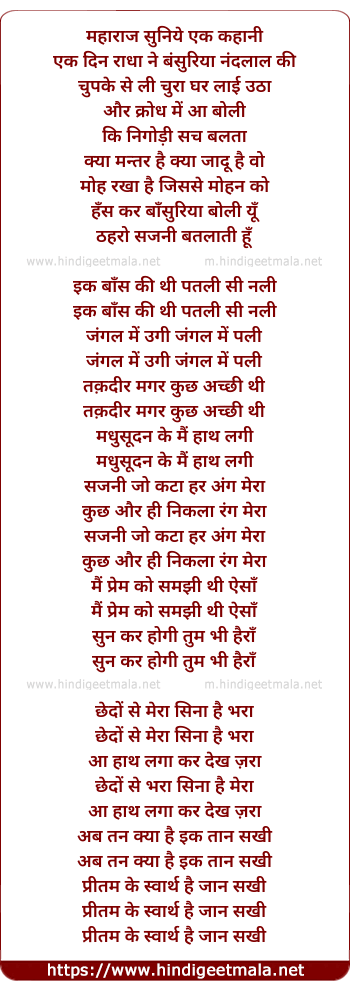 Lyrics of Ek Din Radha Ne Bansuriya, Ik Baans Ki Thi - एक दिन राधा ने बंसुरिया, इक बांस की थी