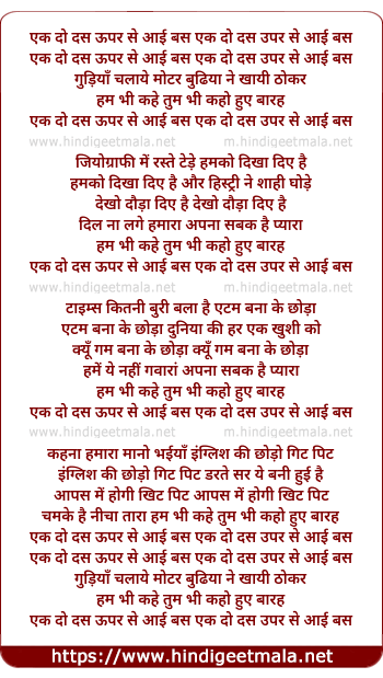 Lyrics of Ek Do Dus Upar Se Aai Bus, Gudiya Chalaye Motar - एक दो दस ऊपर से आई बस, गुड़ियाँ चलाये मोटर