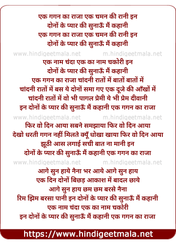 Lyrics of Ek Gagan Ka Raja Ek Chaman Ki Rani - एक गगन का राजा एक चमन की रानी