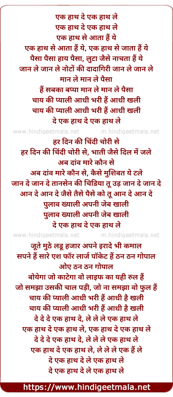 Lyrics of Ek Haath De Ek Haath Le (Remix) - एक हाथ दे एक हाथ ले