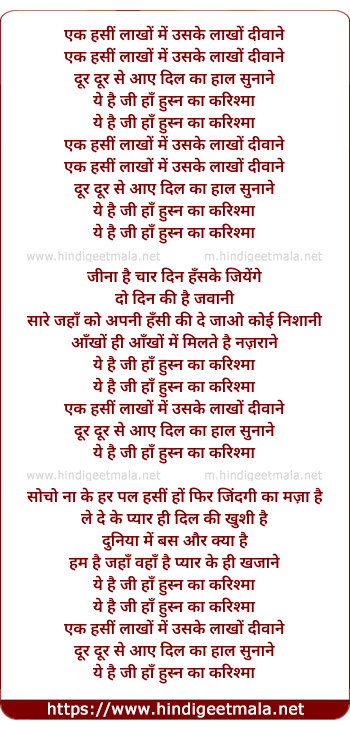 Lyrics of Ek Haseen Laakhon Mein - एक हसीं लाखों में