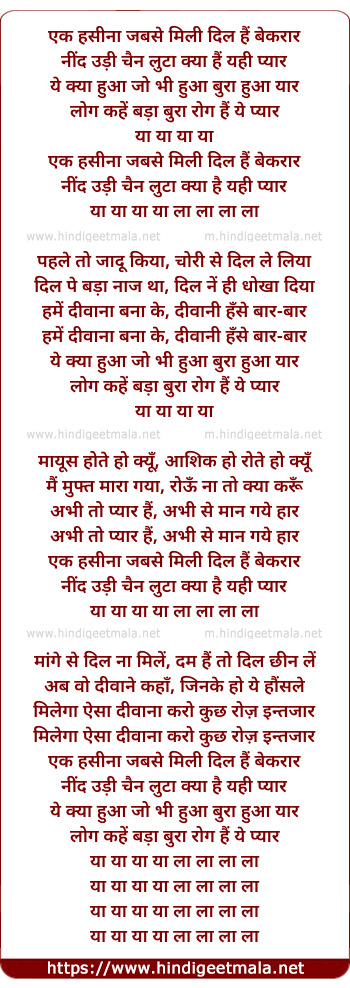 ek hasina jabse mili dil hain bekraar