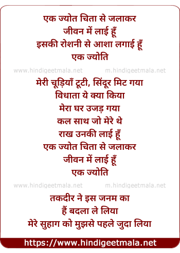 Lyrics of Ek Jyoti Chita Se Jalakar - एक ज्योत चिता से जलाकर