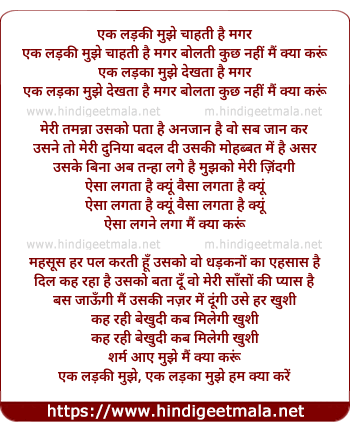 Lyrics of Ek Ladaki Mujhe Chaahati Hai Magar - एक लड़की मुझे चाहती है मगर