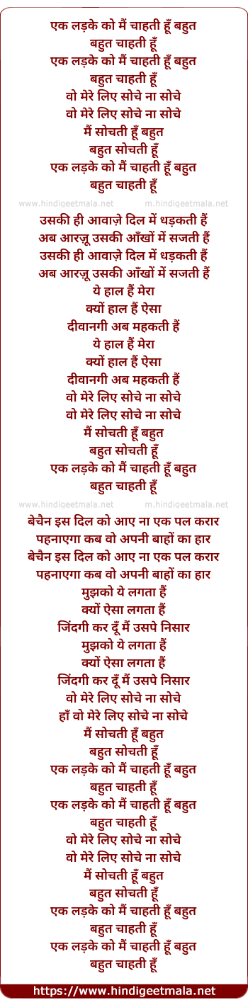Lyrics of Ek Ladke Ko Mai - एक लड़के को मैं चाहती हूँ बहुत