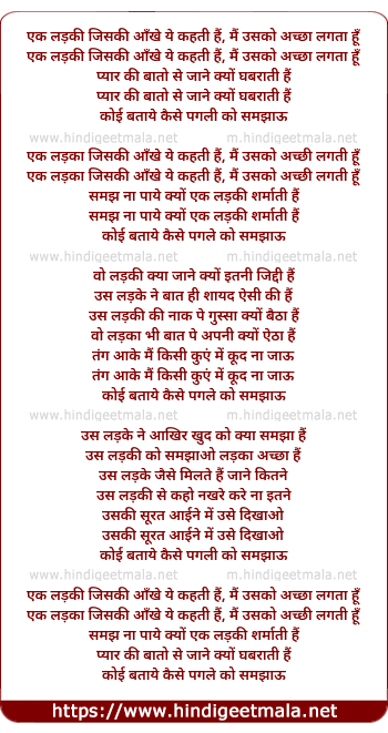 Lyrics of Ek Ladkee Jiskee Aankhe Yeh Kehtee Hai - एक लड़की जिसकी आँखे ये कहती हैं