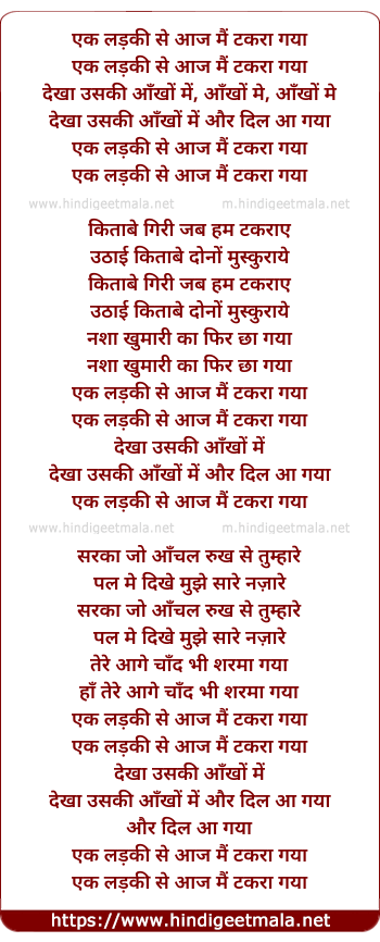 Lyrics of Ek Ladki Se Aaj Main - एक लड़की से आज मैं