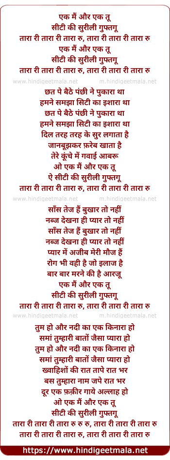 Lyrics of Ek Main Aur Ek Tu - एक मैं और एक तू