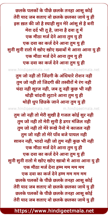 chhalake palko ke pichhe chhalake tanha ansu koyi