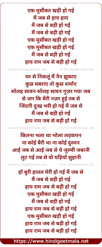 Lyrics of Ek Musibat Khadi Ho Gayi - एक मुसीबत खड़ी हो गई
