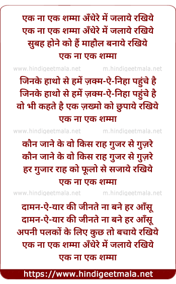 Lyrics of Ek Na Ek Shama Andhere Me Jalaye Rakhiye - एक ना एक शम्मा अँधेरे में जलाये रखिये