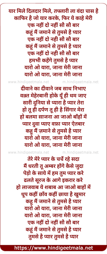 Lyrics of Ek Nahi Do Nahi Sau Sau Baar - एक नहीं दो नहीं सौ सौ बार