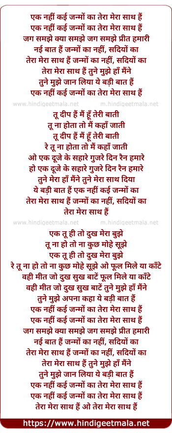 Lyrics of Ek Nahi Kai Janmo Ka - एक नहीं कई जन्मों का