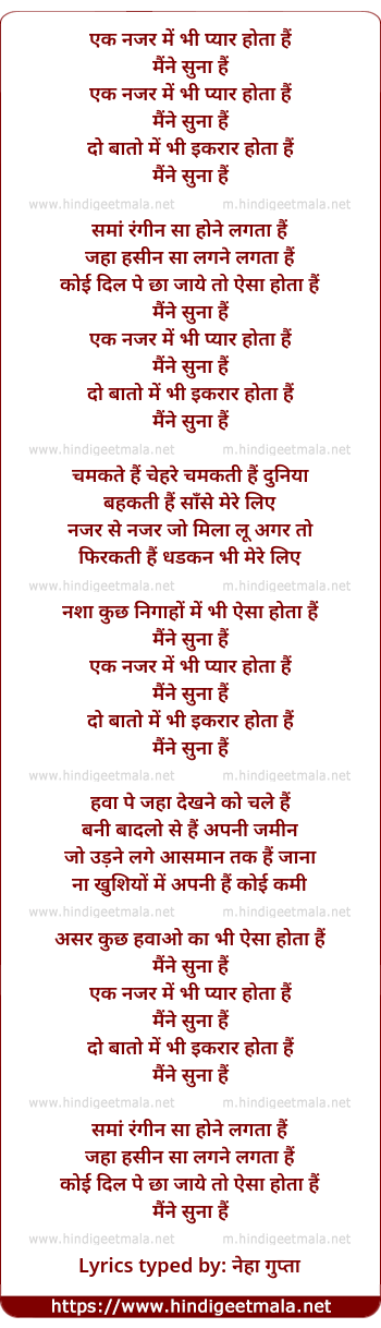 Lyrics of Ek Najar Me Bhi Pyar Hota Hai - एक नजर में भी प्यार होता हैं