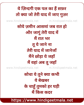 ye zindagi ek pal ka hai safar