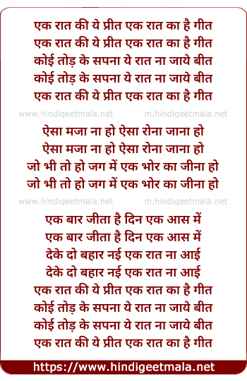 ek rat ki ye preet ek rat ka hai geet